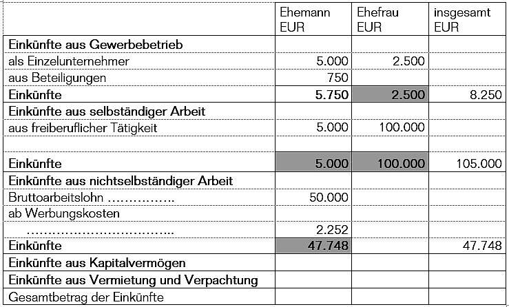Berechnung des zu versteuernden Einkommens (Beispiel: beide Ehepartner sind Ärzte)