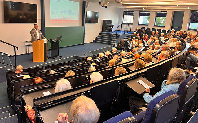 Kaum ein Platz im Hörsaal blieb am 28. April leer, als sich die Besucher zum Tag der Begegnung in der Ärztekammer M-V trafen. Vorstandsmitglied Dr. Evelin Pinnow berichtete zunächst über die Aktivitäten des Vorstandes auf berufspolitischer Ebene, bevor Prof. Oliver Schierz (Direktor der Poliklinik für zahnärztliche Prothetik und Werkstoffkunde an der Unimedizin Rostock) über aktuelle Aspekte der Prothetik und Alterszahnmedizin aufklärte.